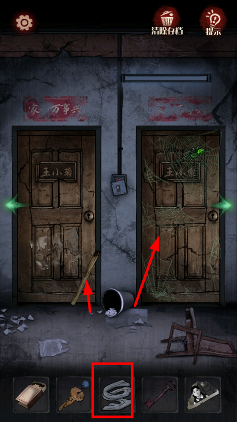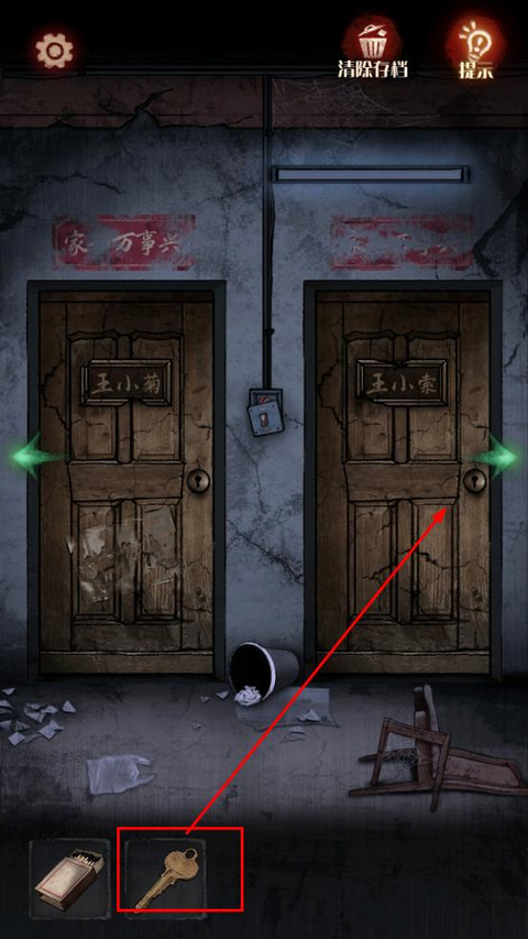 14、向右移动到卧室门口,使用【卧房钥匙】打开右侧王小索的房门,进入房间,第一章顺利完成。