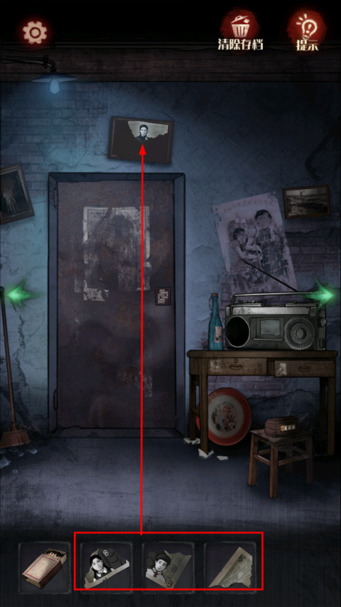 12、将三张【碎照片】放入铁门上方的相框中,拼凑得到数字:5863。