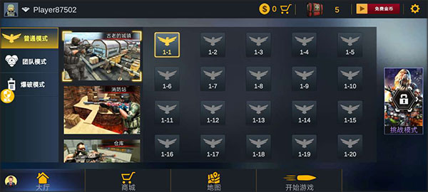 2、选择你喜欢的模式和地图关卡,准备迎接挑战。