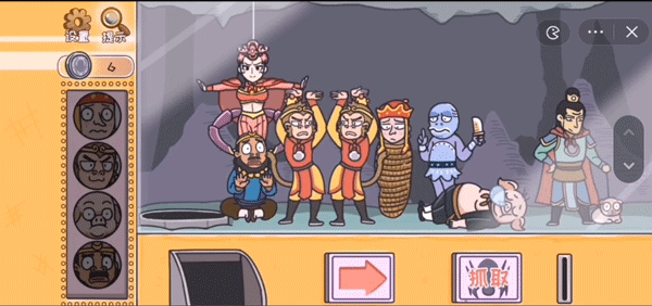 首先直接移动到沙僧身上就能抓住他,然后移动到奔波儿灞身上抓住他。接着移动到唐僧身边进行抓捕,抓住八戒时需抓住他的耳朵并持续点击。长按唐僧可以让他念出紧箍咒,这时孙悟空会出现,抓住他即可顺利通关。