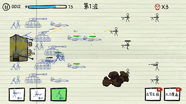 3、纸上战争卡通风格的游戏画面设计,让玩家能够更好地享受游戏,关卡仍然非常丰富,可以随时解锁。