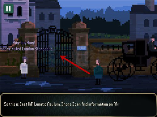 7、下了马车后,玩家会来到医院门口,此时可以直接点击铁门进入医院。