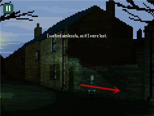 2、进入第二个场景后,玩家需要不断点击屏幕右侧,让角色前进,每前进一步,都会触发一段新的文字剧情。