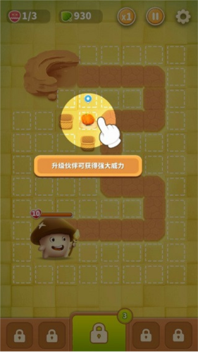 3、每个伙伴最多可以升到3级,新手教程学会后,点击怪物出现的位置即可开始战斗;