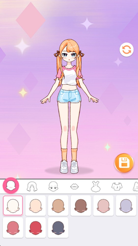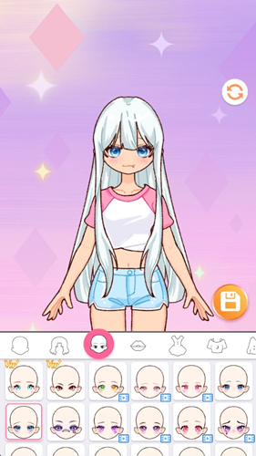 2、在换装界面,你可以自由搭配角色的各个部分,比如发型、五官等,让角色独一无二;