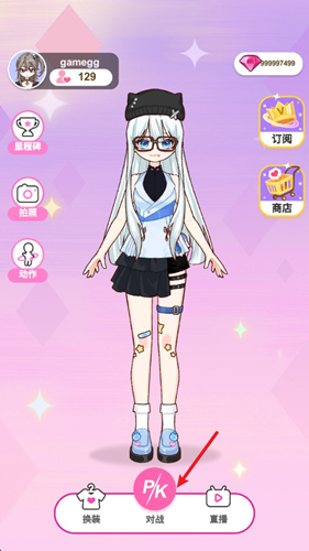 6、回到主界面,你就能看到打扮好的角色,还可以带着她去参加PK比赛;