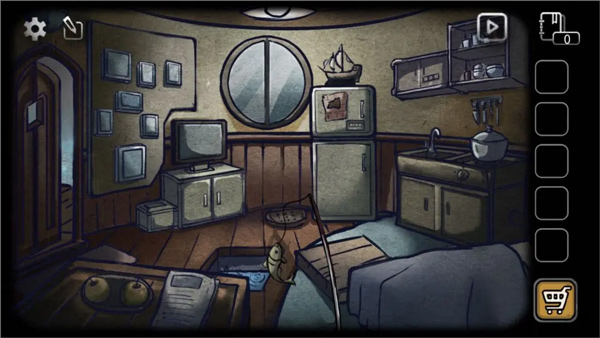 10、回到房间,选择潜水设备,点击地板中间的洞(之前钓鱼的位置),顺利过关。
