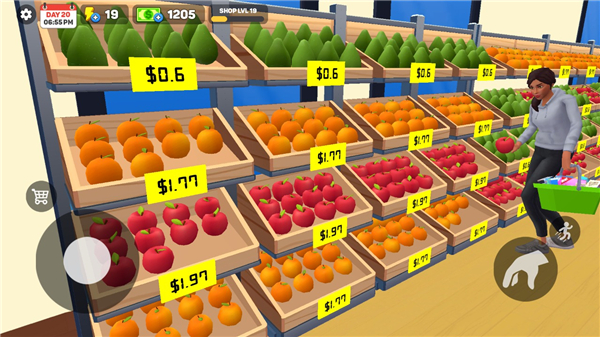 3、在游戏中,保持货架和货架总是满的,并根据市场设定有竞争力的价格来吸引新客户。