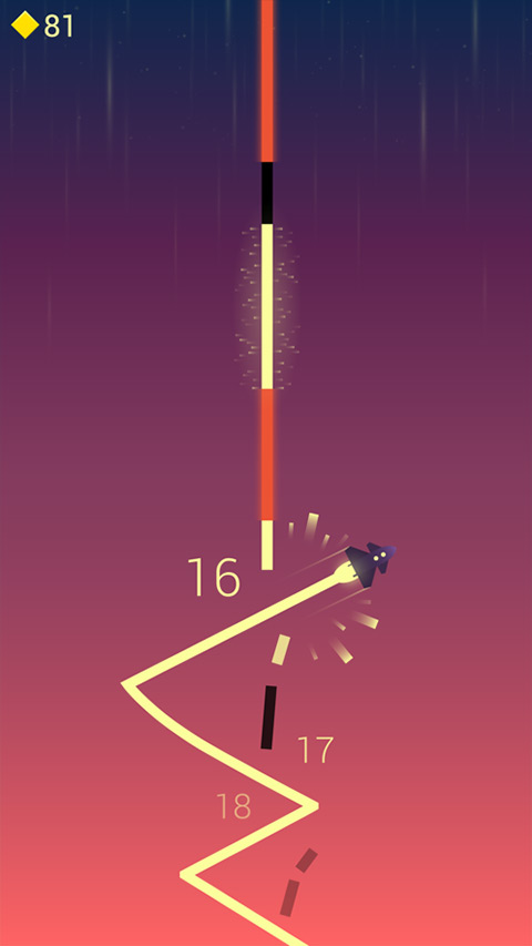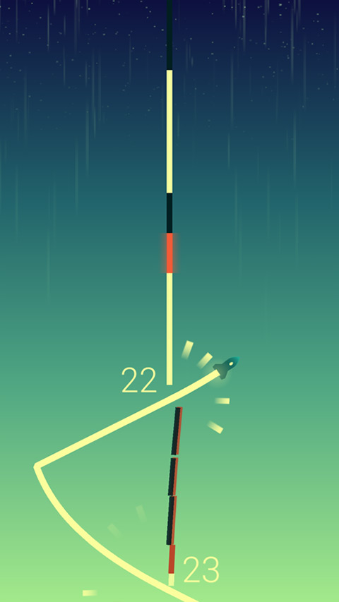 1、玩家需要控制飞船成功地通过线条的浅色区域,同时避开黑色和红色线条。