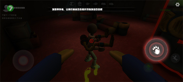 4、当小亨吉发现幸存者时,操控攻击摇杆对目标进行攻击,削弱或制止其行动。