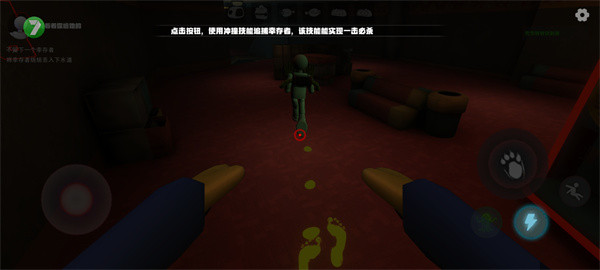 5、点击按钮使用冲撞技能追捕幸存者,技能威力极大,可实现一击必杀,但需要注意技能冷却时间。