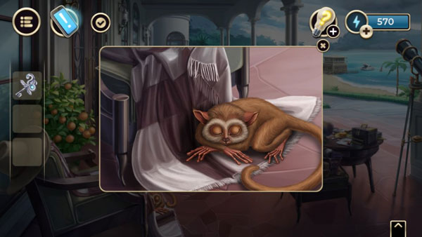 6、完成与角色的对话后,返回行李箱所在位置,将椅子上的猴子赶走,即可获得毛巾道具。