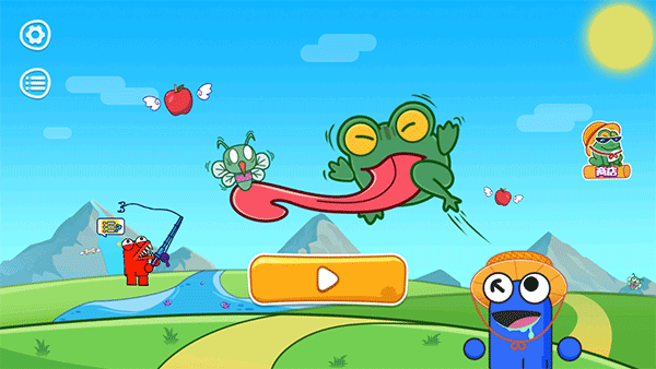 1、首先启动饥饿的青蛙游戏,点击屏幕上的播放按钮就可以立即开始冒险;