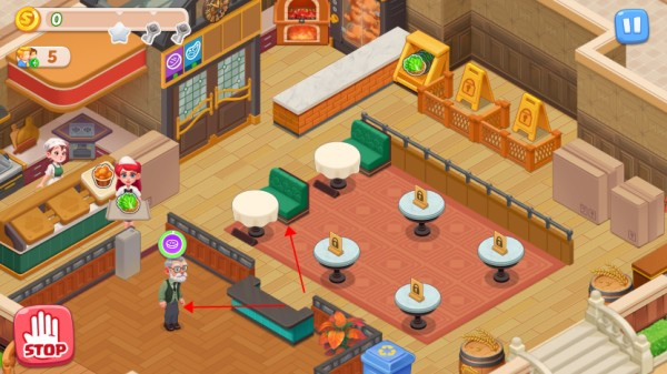 3、点击客人的头像,然后将他们拖动到空闲的座位上,让他们坐下等待服务。