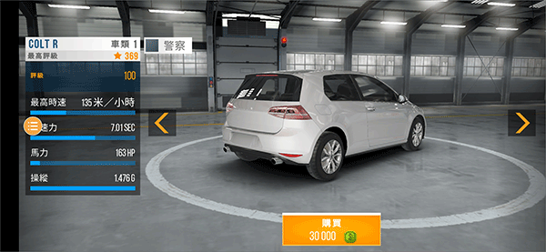 7、游戏里有多种不同款式的车辆,每辆车的评级、最高时速、马力和操控难度都不一样,你可以根据喜好挑选最适合自己的车。
