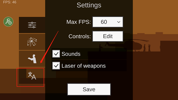 2、由于游戏没有中文版本,你需要进入主页面后点击设置按钮进行语言调整。