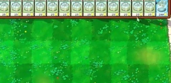 2、首先在草坪上种植多个备用资源,然后把开出的输出型植物安置在左侧位置。