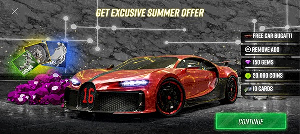 1、在本站下载安装并打开街头城市赛车游戏,点击 Continue 进入游戏;