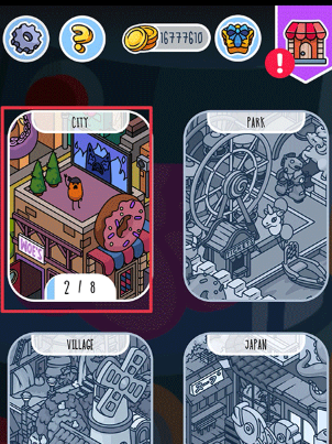 1、打开找到它游戏后,在开始界面中选择你已经解锁的城市,然后进入游戏开始冒险。