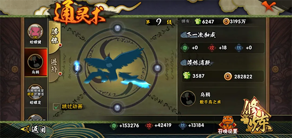 当角色等级达到120级,并解锁通灵兽乌鸦后,将开启通灵兽进阶系统。通过消耗声望、培养石和铜币,可对通灵兽进行进阶,解锁天赋,从而增强战力。