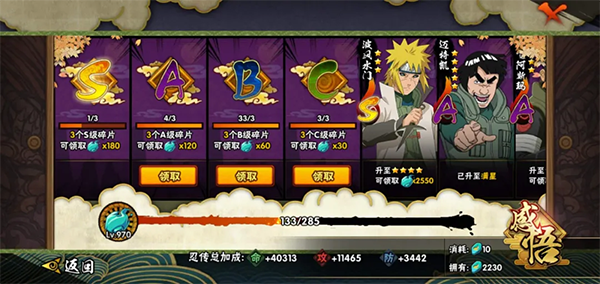 在收集忍者碎片的过程中,忍传系统同样可以帮助我们提升战力,如下图所示: