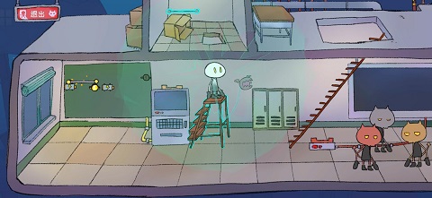 在接下来的关卡,将椅子拉过去,把上方的电线(应该是电线?)拉下来,连接电路。电脑屏幕会爆出一些东西,之后将它拖到地上的电话旁边。