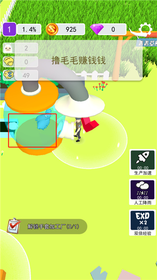 1、玩家需要从零开始建造自己的农场,购买和升级各种建筑,如剪羊毛房和休息室。
