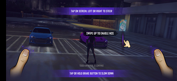 2、进入游戏后,通过左右点击屏幕来控制汽车的行驶方向,向上滑动以释放氮气加速。