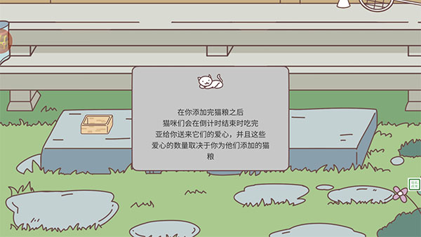 5、别忘了照顾你的小宠物哦,每天记得喂它们,添加好猫粮后,猫咪们会在倒计时结束时吃完,还会在吃完后送上它们的小爱心给你,温馨又可爱。