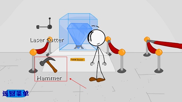 5、紧接着要面对如何撬开装有钻石的柜子,选择“榔头”,成功撬开柜子并获取钻石,然后想办法离开房间。