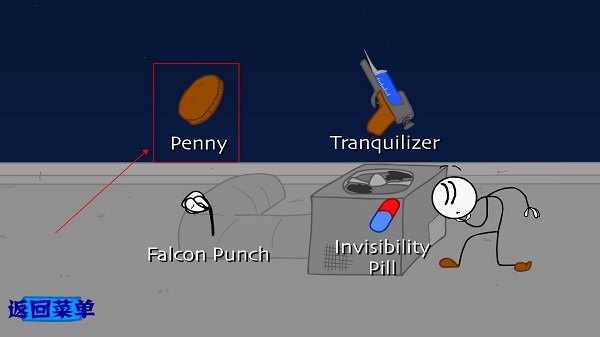 3、在屋顶上,有一位保安把守着门口,这时会出现四个选项,选择第一种“硬币抛掷”,就能在保安毫无防备的情况下顺利通过。