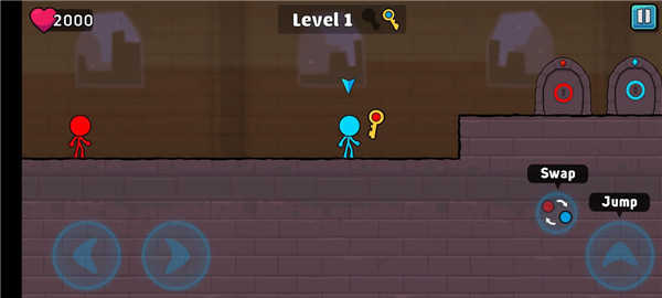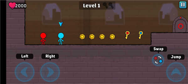 2、火柴人只能捡取与自己颜色相同的钥匙,因此需要在合适的时候切换人物来完成收集。