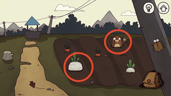 将【大白萝卜】种在洞里,点击土拨鼠,拾取【星星】。