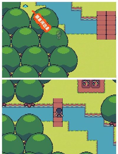 5、前往第二个房子区域,箭头刚过的地方,不要过桥,沿着河边向左上方走。你会发现一个隐藏区域,可以在这里采集到葡萄、银矿和苹果。