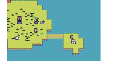 2、前往南边,也就是下方有两只牛和两只羊的小孤岛。从蓝色小花的位置开始,沿着边缘走,你将解锁一座隐秘的桥,通往银矿的采集点。