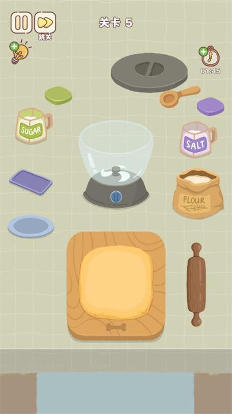 2、然后用擀面杖将面团擀成面饼,完成后记得把所有用过的物品归位整理整齐。