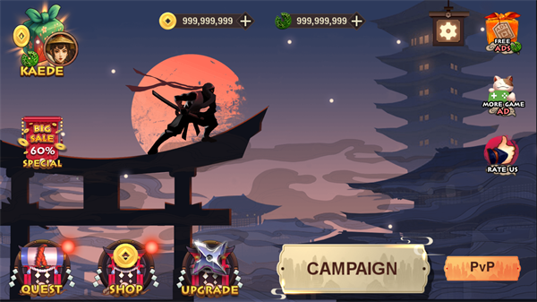 1、可以解锁和升级武器、面具、忍者物品等,自由组合它们,并自定义独特的战斗风格。