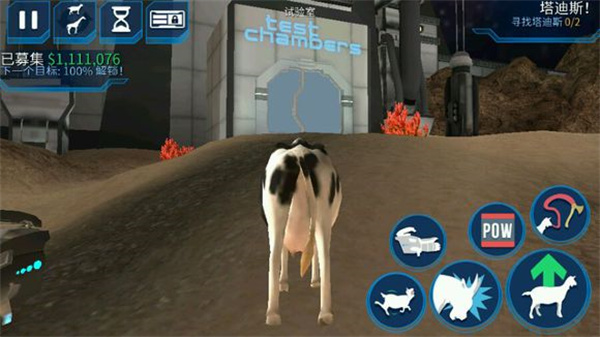 解锁实验室后,需要完成四个实验,踩蓝色按钮可以掉落一头奶牛。