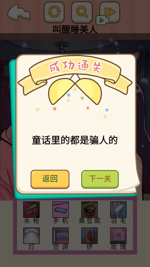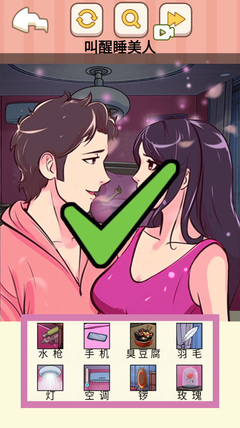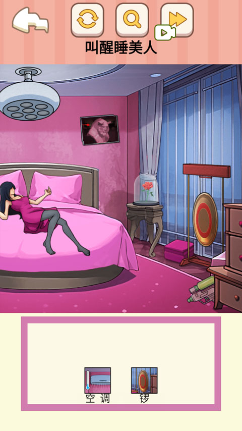 2、观察周围可用的道具,合理运用它们来唤醒床上的女生。