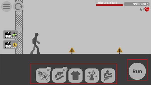 1、打开火柴人杀手4游戏后,你会看到有两种模式:跑酷模式和杀戮模式,点击“Parkour Mode”进入跑酷模式开始游戏。