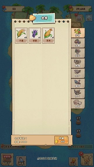 9、收获后的物品会被存入仓库中,仓库中存放所有物品,但容量有限。像《外婆的小农院》一样,升级仓库可以提高存储容量。