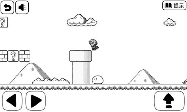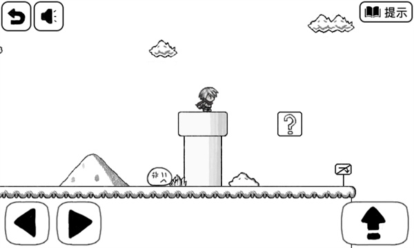 3、继续前进会遇到团子怪,它会模仿我们的动作。这时回头,跳到水管边缘(注意不要跳到水管中间,否则会被食人花攻击)。