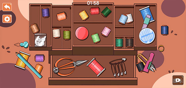 4、在每个关卡中,都会提供各种物品,并且它们都被放在一起,需要将物品整齐地放回原来的位置。