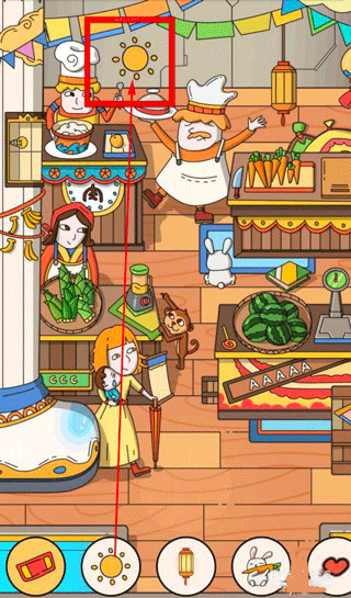 5、拖动天上的云彩,就会露出太阳,让场景变得明亮起来。
