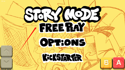 1、首先打开周五夜放克游戏,点击左侧的上下箭头选择“故事模式”,然后点击右侧的A键确认。