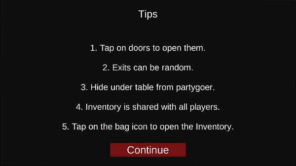 6、系统会显示一段游戏小提示,点击“Continue”即可成功创建房间。
