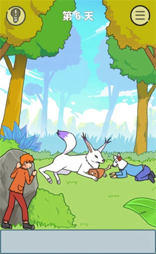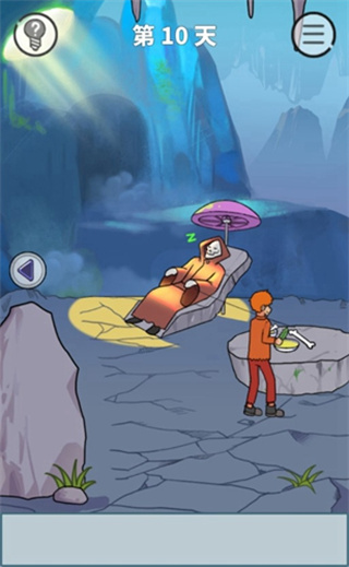 进洞拿骨头前,先在山洞外的草堆上拿到锯齿形草。用这个草割断骷髅死神和骨头之间的线,就能顺利拿到骨头,轻松完成关卡。