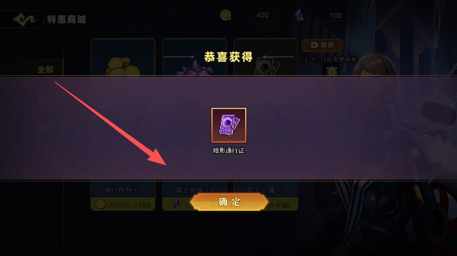 2、暗影通行证可以通过商城直接购买获得,或者通过完成连续7日签到任务领取。