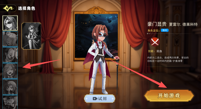5、从可用的狩猎者角色列表中,挑选你想要使用的角色开始狩猎。