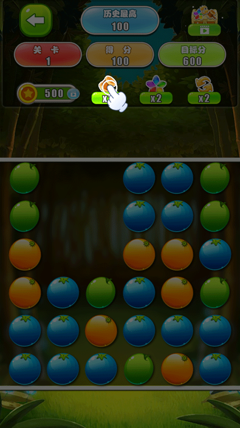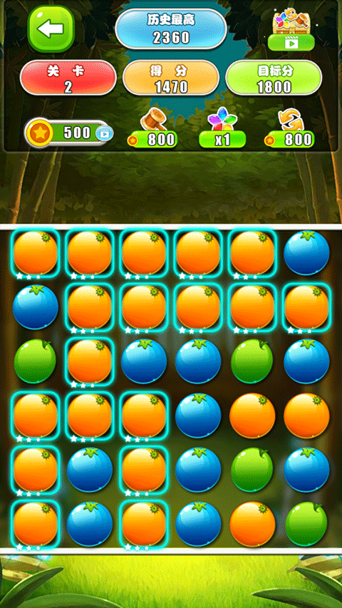 3、只有相同的水果才能被淘汰,一旦所有的水果被清除,就可以通过这个关卡。